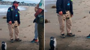 ภาพไวรัล เพนกวินว่ายน้ำ ขึ้นหาดที่ชิลี คนโทรแจ้งเจ้า หน้าที่ มาถึงยืนประชุมกัน มีเพนกวินร่วมวง รอให้ข้อมูล เหมียวหง่าว 17 February 2026