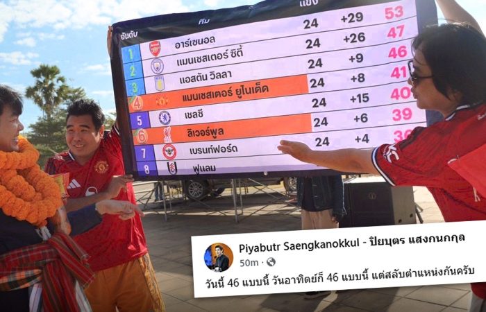 แสบจัด!! แฟนแมนฯ ยู ปรินต์ ตารางคะแนนใส่ไวนิล เอาไปขิงใส่จารย์ปิยบุตร แมนฯ ยูอันดับ 4 ลิเวอร์พูลอันดับ 6 เหมียวหง่าว 3 February 2026