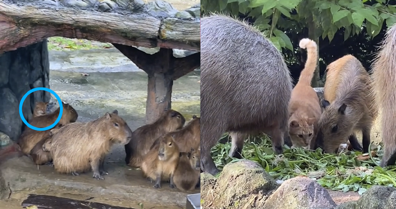 เพราะล่าสุด เจ้าแมวส้มตัวหนึ่งได้กลายเป็นไวรัลขึ้นมา จากการที่มันได้กลายเป็นหนึ่งในสมาชิกของฝูง ‘คาปิบาร่า’