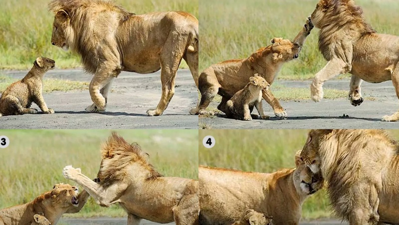 จังหวะนึงก็ไปเจอครอบครัวของสิงโตครอบครัวหนึ่ง มีพ่อ-แม่-ลูก ขณะที่พ่อสิงโตกำลังเดินเข้าไปหาลูก