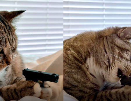 ที่มา : https://www.reddit.com/r/cats/comments/1pcg12c/3d_printed_a_toy_glock_then_walked_in_on_this/