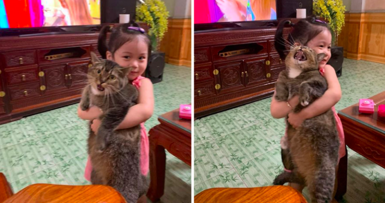ด้านเด็กหญิง ยิ่งเจ้าเหมียวดิ้นแรงมากเท่าไหร่ เธอก็ยิ่งชอบ และกอดมันแน่นขึ้นไปอีก