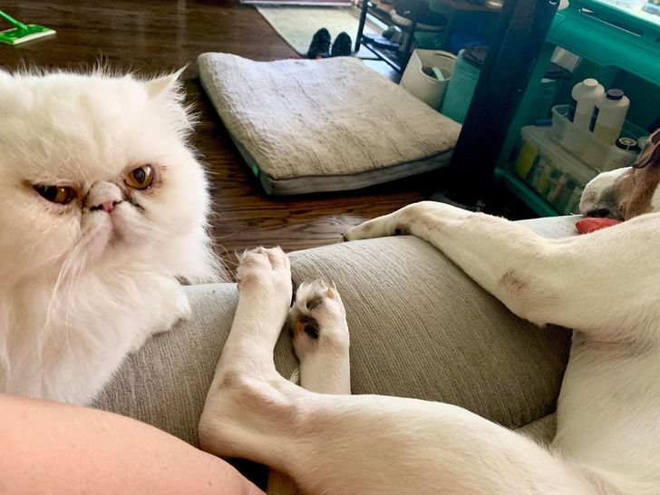 7. ครอบครัวเพิ่งรับเลี้ยงสุนัข แต่เห็นได้ชัดว่าเจ้าเหมียวไม่ชอบ