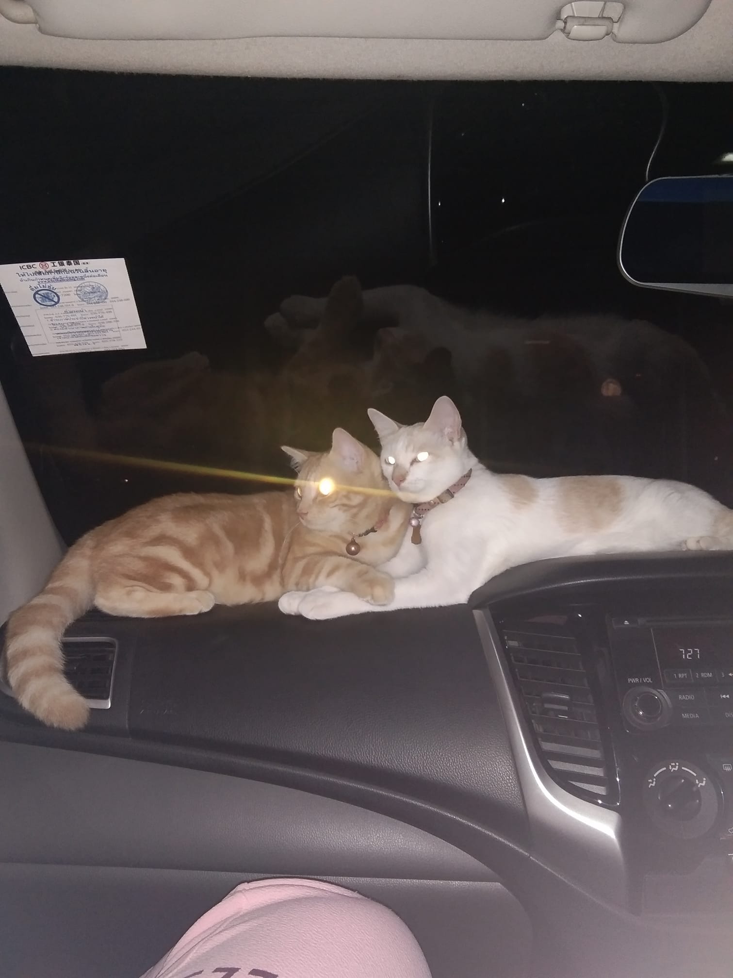 แมวส่วนใหญ่ (หมายถึงแมวเลี้ยงนะ) จะใช้ชีวิตอยู่แต่ในบ้าน วันๆ หนึ่ง หมดไปกับการกิน นอน และเล่น แต่สำหรับแมวคู่หู 2 ตัวนี้ พวกมันใช้ชีวิตส่วนใหญ่บนรถ จนกลายเป็นแมวนักเดินทาง