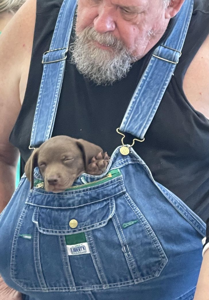 17. หลังจากถ่ายรูปนี้ คุณย่าก็เปิดเสื้อคลุมออก แล้วน้องหมาก็เข้าไปขดตัวบนตักเธอ