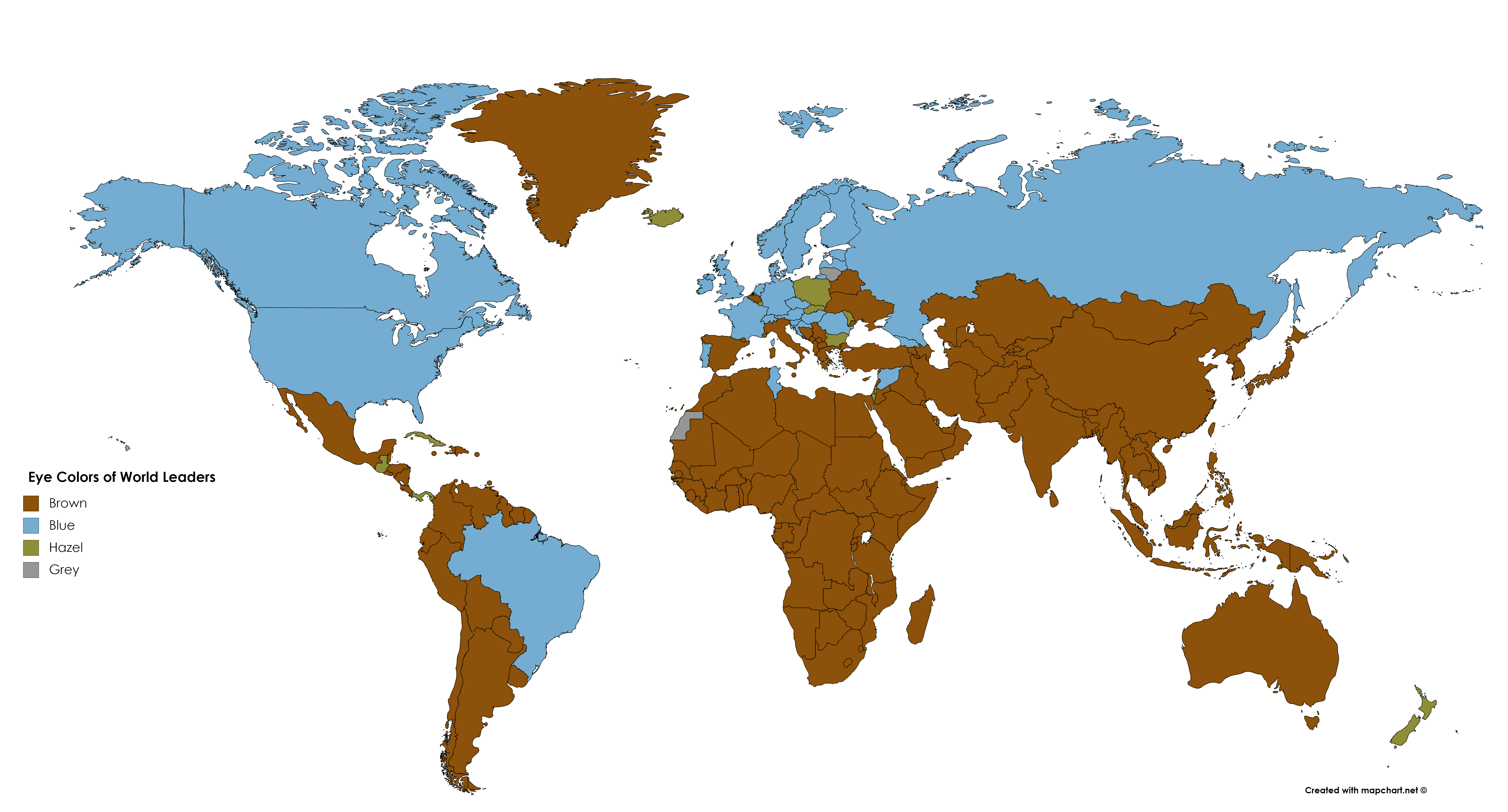 แผนที่แสดง สีดวงตาของผู้นำประเทศต่างๆ ในโลก
