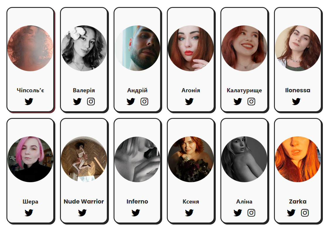 จากนั้นเธอก็ไปรวบรวมชาวยูเครนทั้งชายและหญิงอีก 50 ชีวิต (ใน 10 รายนั้นไม่ขอเปิดเผยหน้าตา) ที่ส่วนใหญ่ก็เป็นดาว OnlyFans กันอยู่แล้วและสนใจจะสนับสนุนกองทัพ มาเข้าร่วมโปรเจกต์นี้