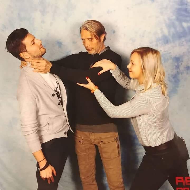 แล้วแฟนๆ ก็มักจะขอให้เขาทำท่า ‘บีบคอ’ เวลาถ่ายรูปด้วยกัน ซึ่งก็ต้องบอกว่าสีหน้าและท่าทางของเฮีย Mads เวลาบีบคอนี่มันสมจริงสุดๆ