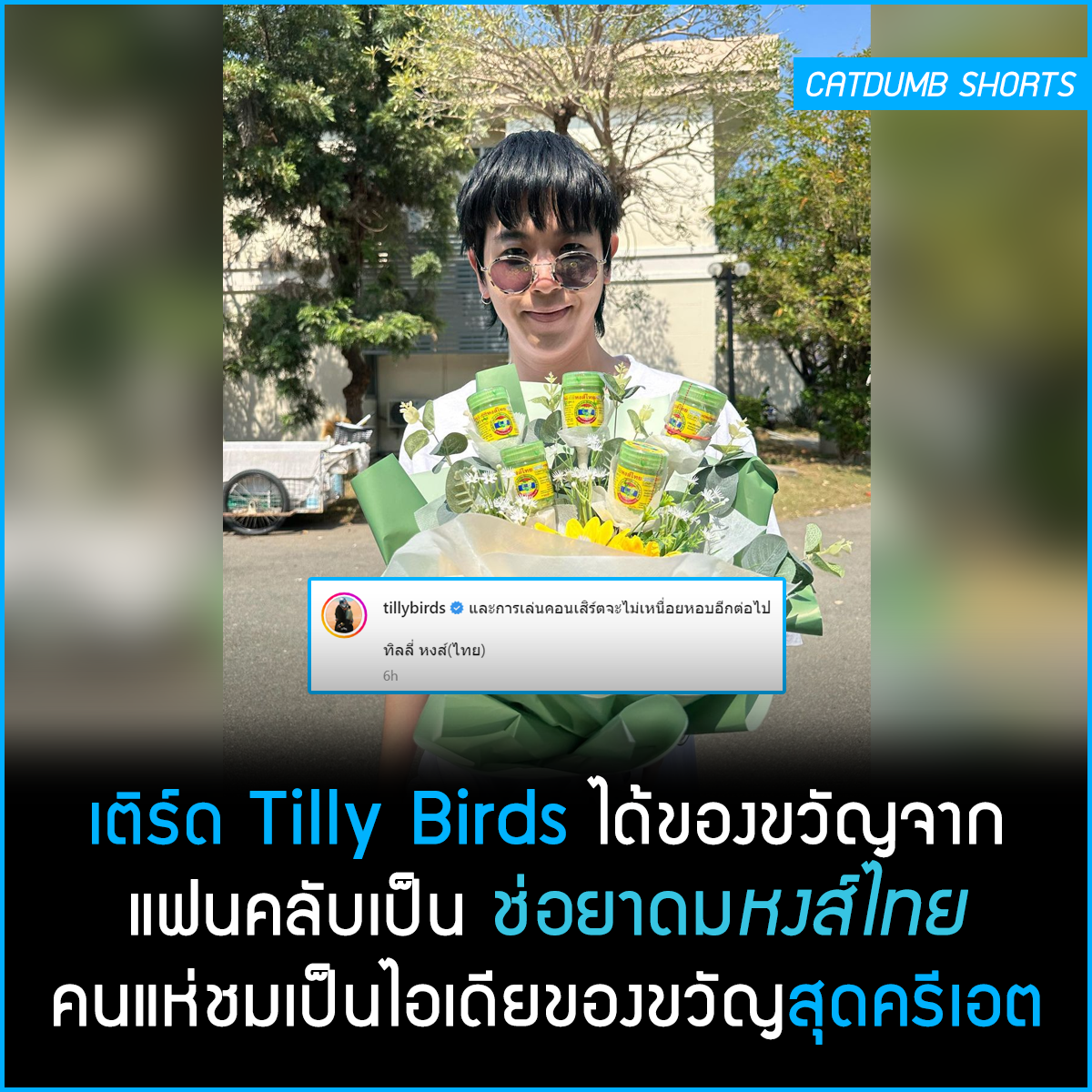 คือล่าสุดทางวง Tilly Birds ได้โพสต์ว่ามีแฟนคลับรายหนึ่งเอายาดมหงส์ไทย ที่ทำเป็นช่อดอกไม้ มาให้กับเติร์ดนักร้องนำ