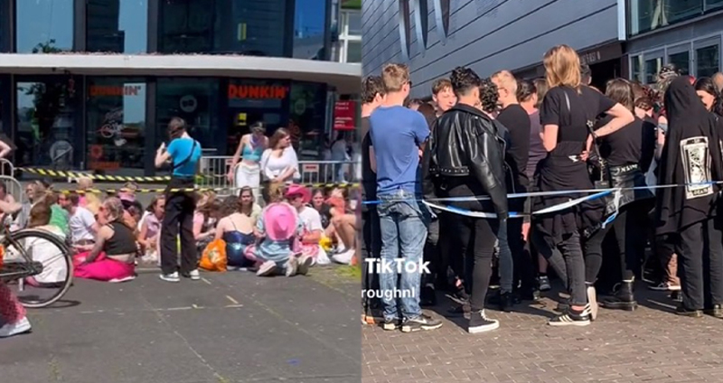 ที่ฮาคือมีคนอัดคลิปที่ทั้งแฟนคลับต่อแถวรอกันเข้าคอนเสิร์ตเอาไว้ด้วยนะ อย่างที่เห็นค่ะสไตล์ของพวกเขาคนละโลกจนมีคนแซวว่า