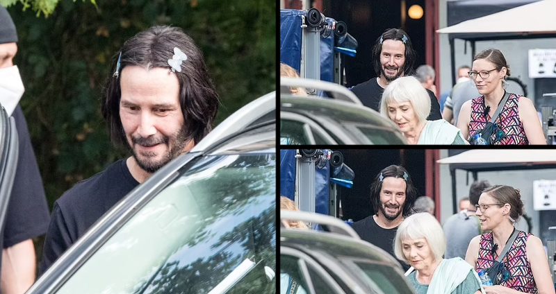 โดยในช่วงพักกอง Keanu เลือกที่จะหยิบกิ๊บติดผมอันโตคู่หนึ่งมาจัดการผมยาวพะรุงพะรังของเขา ทำให้เราได้เห็นภาพน่ารักๆ แบบนี้