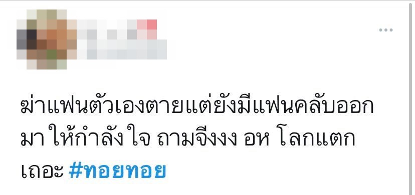 และเรื่องราวยิ่งดราม่าขึ้นไปอีกเมื่อมีแฟนคลับบางส่วนออกมาให้กำลังใจและยืนเคียงข้างทอยทอยหลังเกิดเหตุการณ์นี้