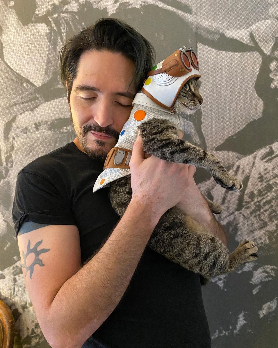 David ลงรูปคู่กับน้องแมวตั้งแต่เดือนมิถุนายนแล้วค่ะ และไม่นานมานี้สื่อต่างประเทศเพิ่งหยิบเรื่องราวมาพูดถึงกัน ซึ่งน้องแมวตัวนี้มีชื่อว่า Bubblegum (หมากฝรั่ง) หรือชื่อเต็มว่า Abner Bubblegum Polka Dot Cat นั่นเอง