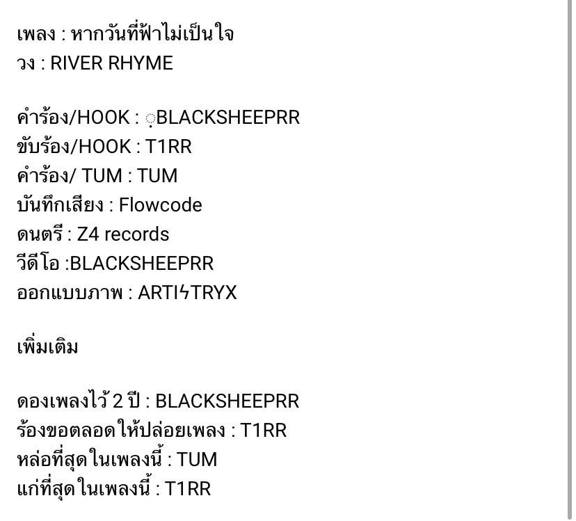 ไม่รู้ว่ามีใครสามารถให้เครดิตทุกคนได้ปั่นขนาดนี้ไหม แต่ถือว่าเป็นความน่ารักของวงนี้เลยล่ะ หากใครที่อยากลองฟังเพลงของพวกเขาก็สามารถติดตามได้ที่ช่องยูทูบ RIVER RHYME channel