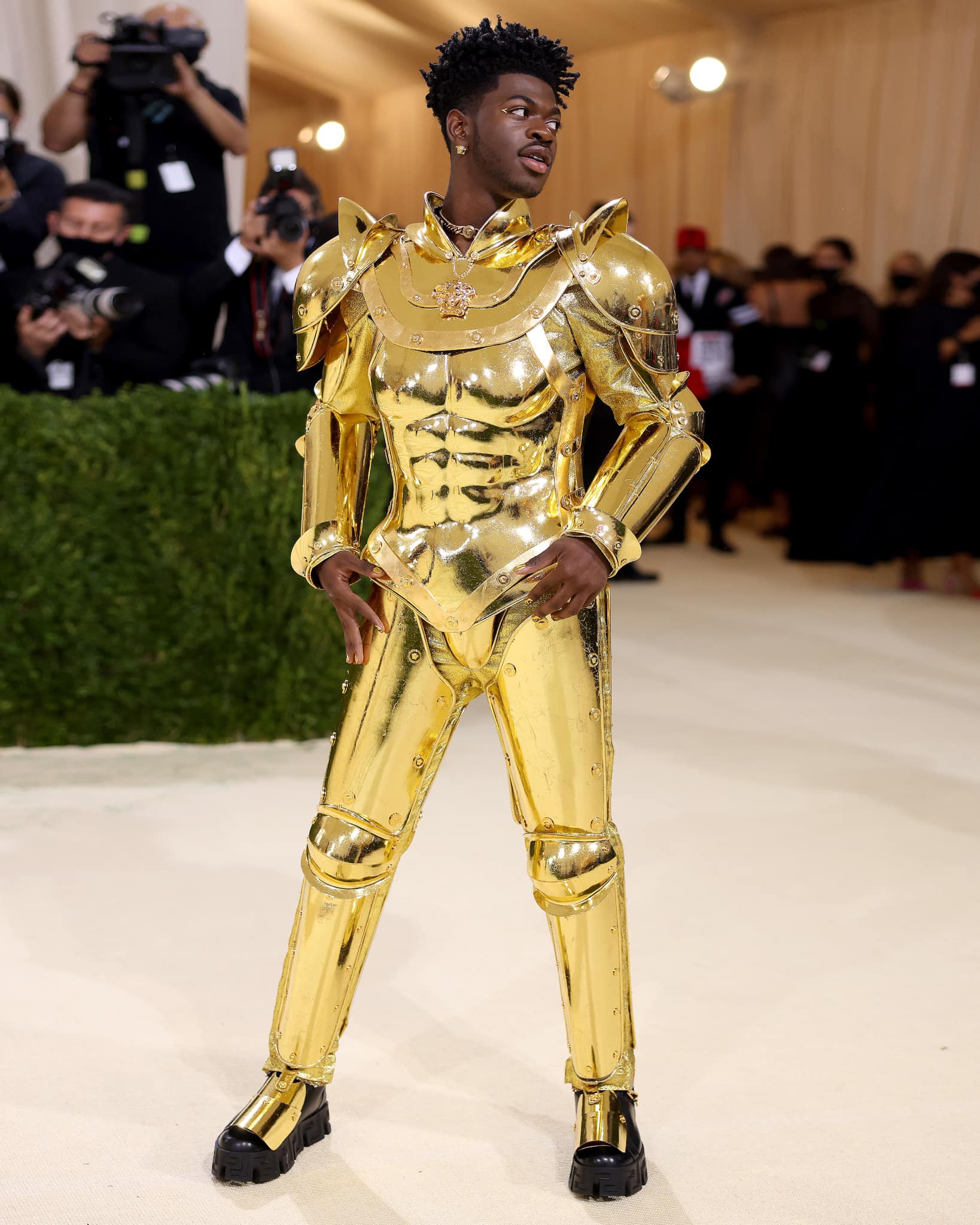 ในลุคสุดท้าย Lil Nas X ได้ถอดชุดเกราะทิ้งและเผยให้เห็นชุดแนบเนื้อสีทองสุดปัง ที่แสดงถึงใช้ชีวิตในแบบของตัวเองและไม่ต้องปิดบังอีกต่อไป