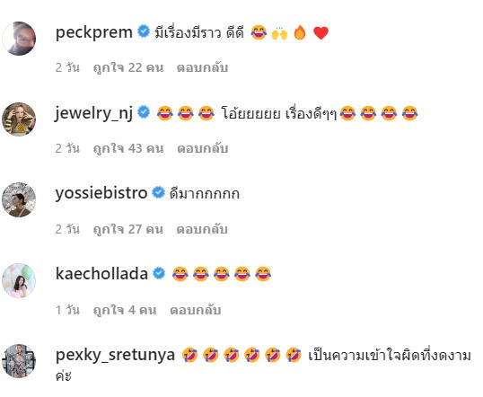 หลังจากที่ป๋อมแป๋มเล่าเรื่องนี้ออกไป ทั้งเพื่อนดาราและชาวเน็ตหลายคนก็เข้ามาคอมเมนต์มากมาย เจ้าของวันเกิดอย่างเป็กกี้ บอกว่าเป็นความเข้าใจผิดที่งดงาม ส่วนหนุ่ม เป็ก เปรมณัช ก็บอกว่า “มีเรื่องราว ดีดี”