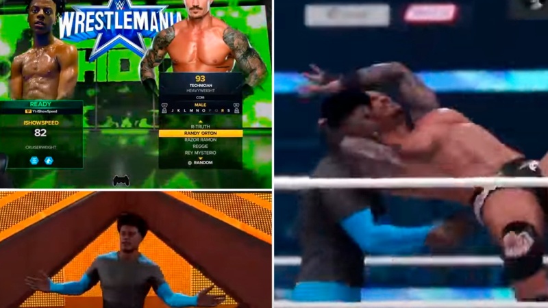 โดยพรี่ iShowSpeed แกเล่นไปทั้งหมด 2 เกม ครับ เกมแรกก็โชว์ฝีมือเหนือเลย ตบบอทซะยับ แถมยังใส่ท่า RKO คืนไปด้วย