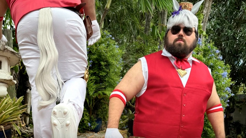 แล้วการคอสฯ ของพี่ชายคนนี้ก็จัดเต็ม ทั้งเสื้อสีแดง กางเกงสีขาว และหูม้าอันเป็นเอกลักษณ์ และแน่นอนว่ามี ห า ง ที่ยาว ส ล ว ย ด้วย
