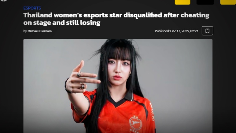 สื่อที่พูดถึงนี้ก็คือ Dexerto เป็นสื่อเกมของฝั่งยุโรป ที่มีผู้ติดตามหลักล้าน พาดหัวข่าวว่า “นักแข่งอีสปอร์ตสาวไทยคนดัง ถูกตัดออกจากการแข่งขัน หลังโกงการแข่งบนเวที แต่ก็ยังแพ้อยู่ดี”