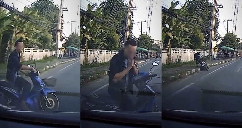 หนุ่มรถเวฟจึงไหว้ขอโทษรถยนต์ด้วยรอยยิ้ม ก่อนจะสับเกียร์ขับออกไป แต่ก็ยังหันกลับมาก้มหัวขอโทษรถยนต์อยู่