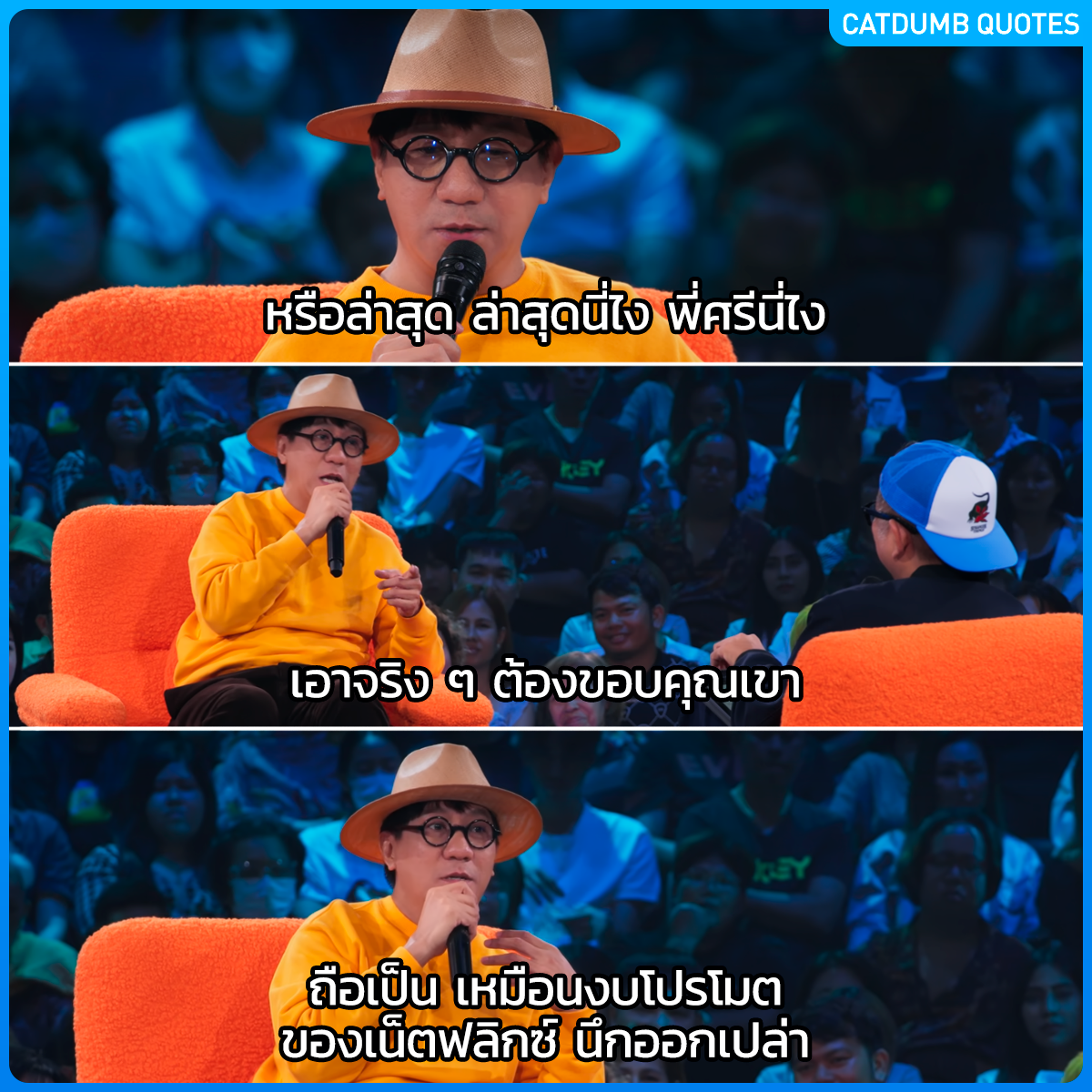 ซึ่งแกก็บอกว่าขอบคุณที่พี่ศรีพูดถึง เพราะมันเหมือนเป็นการช่วยโปรโมตรายการ ว่ามีให้ดูใน Netflix เลยนะ