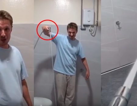พรี่ชายฝรั่งคนนี้แกโพสต์คลิปวิดีโอ เผยให้เห็นถึง “พลานุภาพ” ของสายฉีดชำระ ที่โรงแรมแห่งนึง ที่มันแรงซะเหลือเกิน แรงถึงขั้นเกือบสู้แรงดีด (Recoil) ไม่ไหว