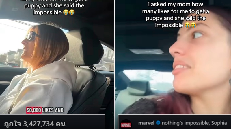 แต่ดูเหมือนว่าคุณแม่จะไม่ค่อยเต็มใจสักเท่าไหร่ ลูกก็เลยท้าว่า “คลิปนี้ได้กี่ไลก์ แม่ถึงจะยอมให้รับลูกหมามาเลี้ยงในช่วงวันคริสต์มาสนี้?”