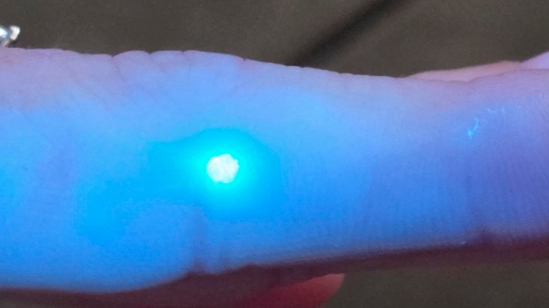 และเวลาที่เอาแสงยูวีไปส่อง ก็จะทำให้จุดที่เป็นสามารถเรืองแสงออกมาได้