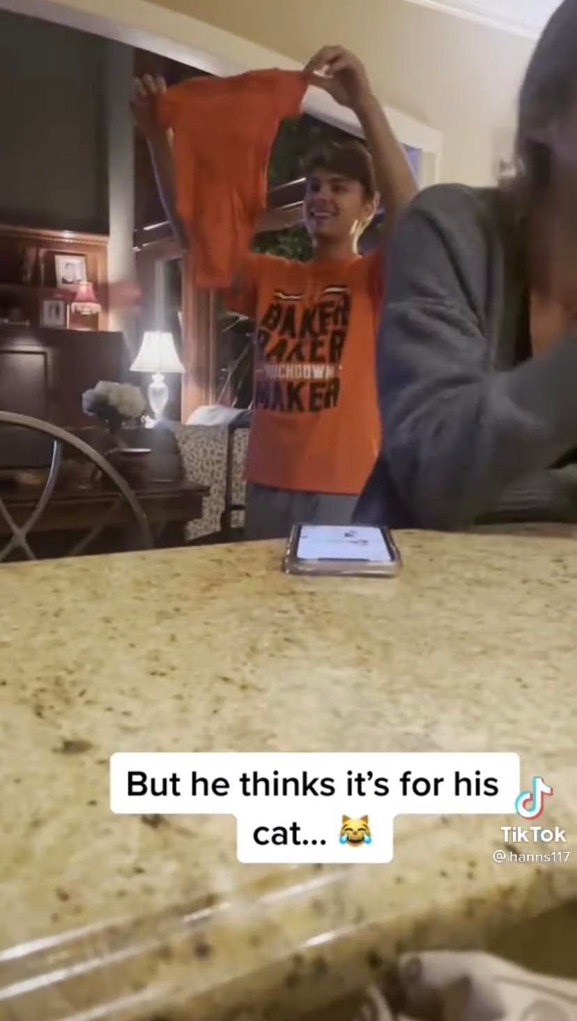 ในตอนที่น้องชายของเธอเปิดถุงมาแล้วเจอเสื้อ เขาก็ร้องด้วยความดีใจ แต่ไม่ใช่ดีใจเพราะพี่สาวของเขากำลังตั้งครรภ์นะ เพราะเขาคิดว่าพี่สาวซื้อเสื้อตัวนี้มาเพื่อ ‘น้องแมว’ ของเขาเองต่างหาก