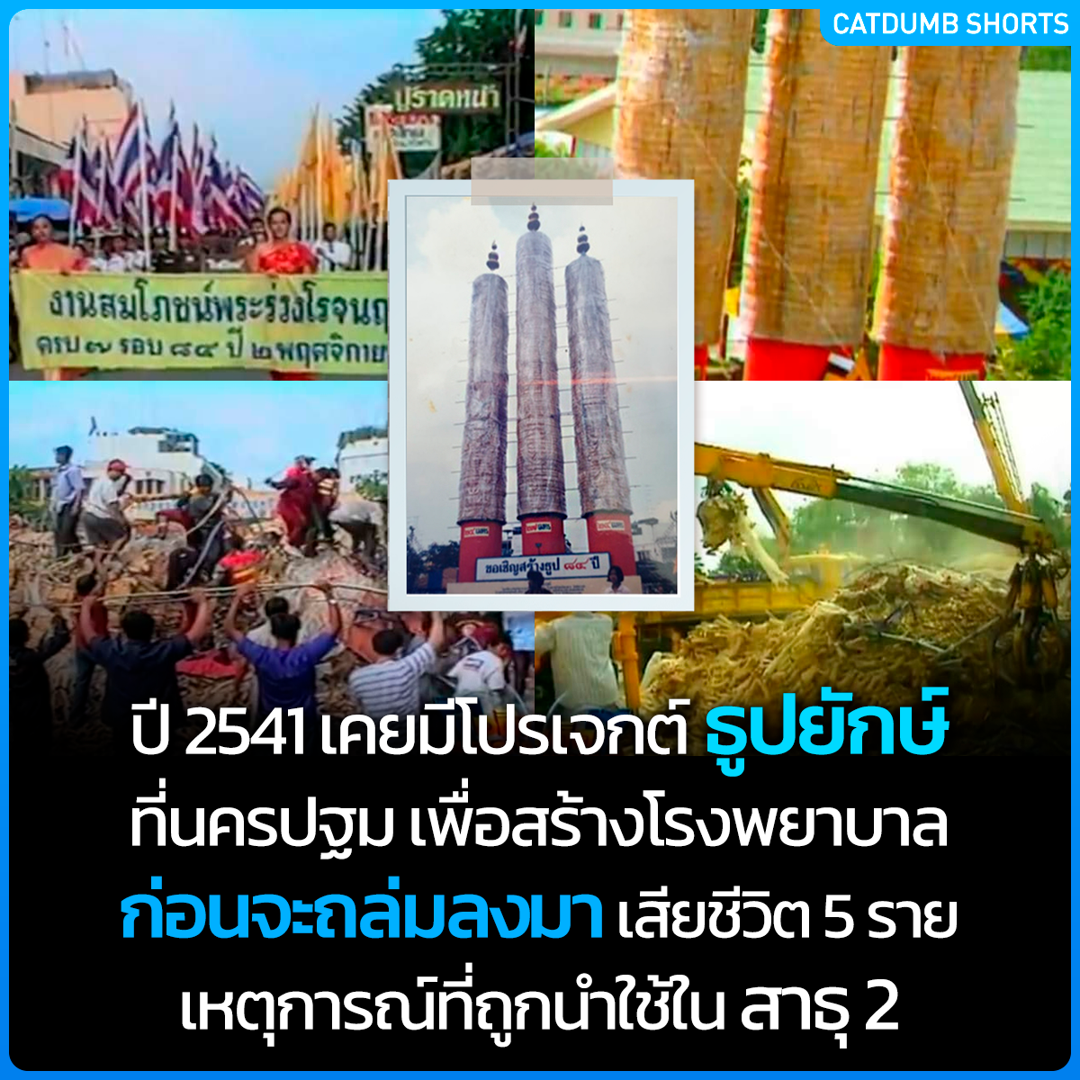 วันที่ 2 พฤศจิกายน 2541 ได้เกิดเหตุธูปยักษ์ถล่ม ที่จังหวัดนครปฐม จนกลายเป็นข่าวดังและความทรงจำอันเลวร้ายของชาวนครปฐมมาจนถึงทุกวันนี้เลยครับ