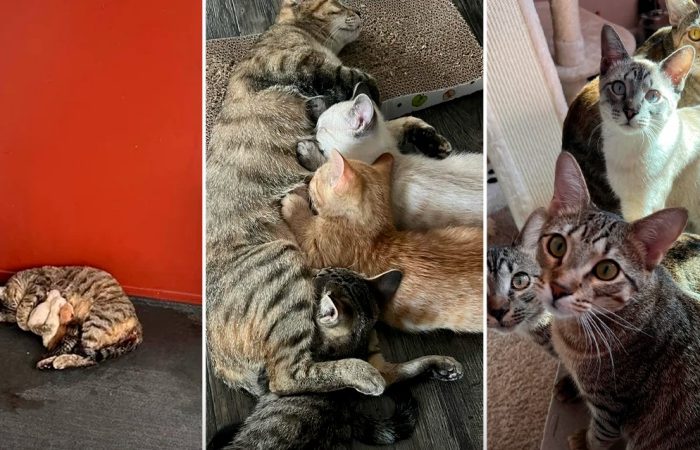 เจอแม่แมว นอนกอด ให้นมลูก 6 ตัว บนพื้นเย็น ๆ พี่ชายเลยตัดสินใจ รับมาเลี้ยงทั้งครอบครัว