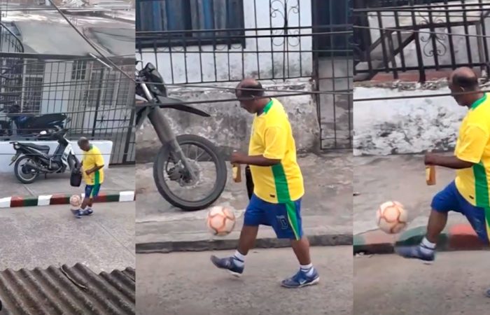 วันธรรมดา ๆ ในบราซิล ชายแต่งชุดบอลทีมชาติ เดินไปเดาะบอลไปข้างถนน ชิลล์จัด