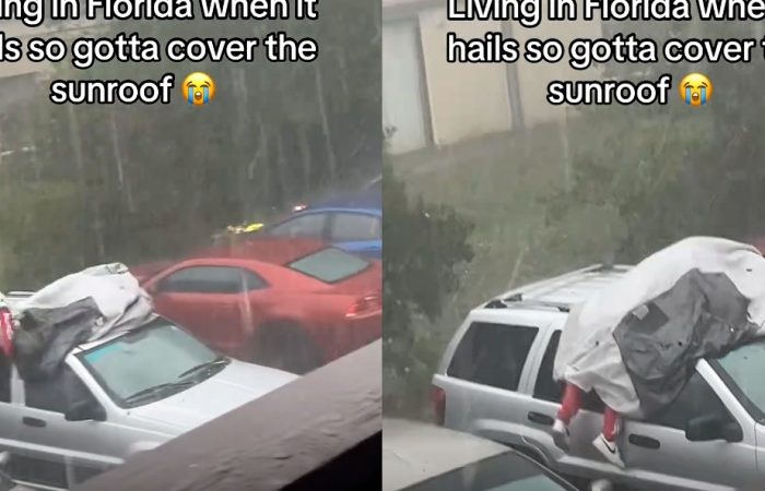 ฮ่า ฮ่า ฮ่าาา รักรถยิ่งกว่าชีพ!! พรี่ชายแปลงร่าง เป็นโล่มนุษย์ บังฝนลูกเห็บ ไม่ให้โดนรถของตัวเอง ใช่ครับ เหตุเกิดที่ฟลอริด้า เหมียวหง่าว 1 April 2026