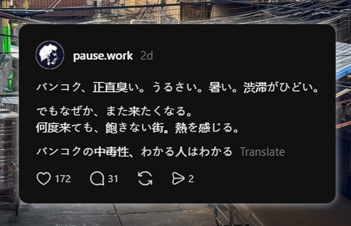ฮ่า ฮ่า ฮ่าาา อิหยัง!? คนญี่ปุ่นโพสต์รีวิว ชีวิตที่กรุงเทพฯ เหม็น ร้อน รถติด เสียงดัง ไม่มีอะไรดีสักอย่าง แต่ก็ยังอยากกลับมาอีก… เหมียวหง่าว 24 March 2026