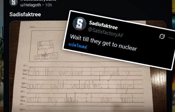ห้องเล่นเกม พ่อโพสต์รูปการบ้านลูก เล่ากิจกรรม วันหยุด เล่นเกม Satisfactory กับพ่อสนุกจัง แต่เขียนผิดเป็น Sadisfaktree โดนล้อยับ ผู้พัฒนาเกมเลยเปลี่ยนชื่อแอคเคาท์ แล้วบอกว่าเขียนผิดตรงไหน!? เหมียวหง่าว 1 April 2026