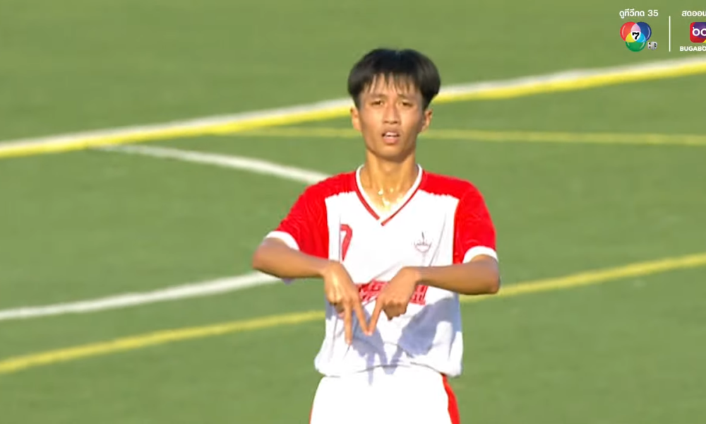 น้องชญานนท์ บอล 7 สี สร้างตำนาน ล็อกหลบยิงโล่งๆ หันมาดีใจอย่างเท่ โดยไม่รู้ว่ากองหลังมาสกัดได้จากเส้น