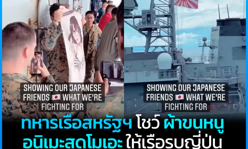 ทหารเรือสหรัฐฯ โชว์ผ้าขนหนูอนิเมะสุดโมเอะ ให้เรือรบญี่ปุ่น พร้อมแคปชั่น “โชว์ให้เพื่อนๆ ชาวญี่ปุ่น ดูว่าพวกเรากำลังต่อสู้เพื่ออะไร”