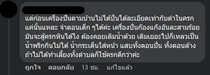 ส่วนบางคนก็มองว่าการปั่นกับการตำให้ความแตกต่างในเรื่องของเนื้อสัมผัส และเครื่องปั่นที่ใช้ในบ้านก็ไม่ละเอียดเท่ากับการตำด้วยครก