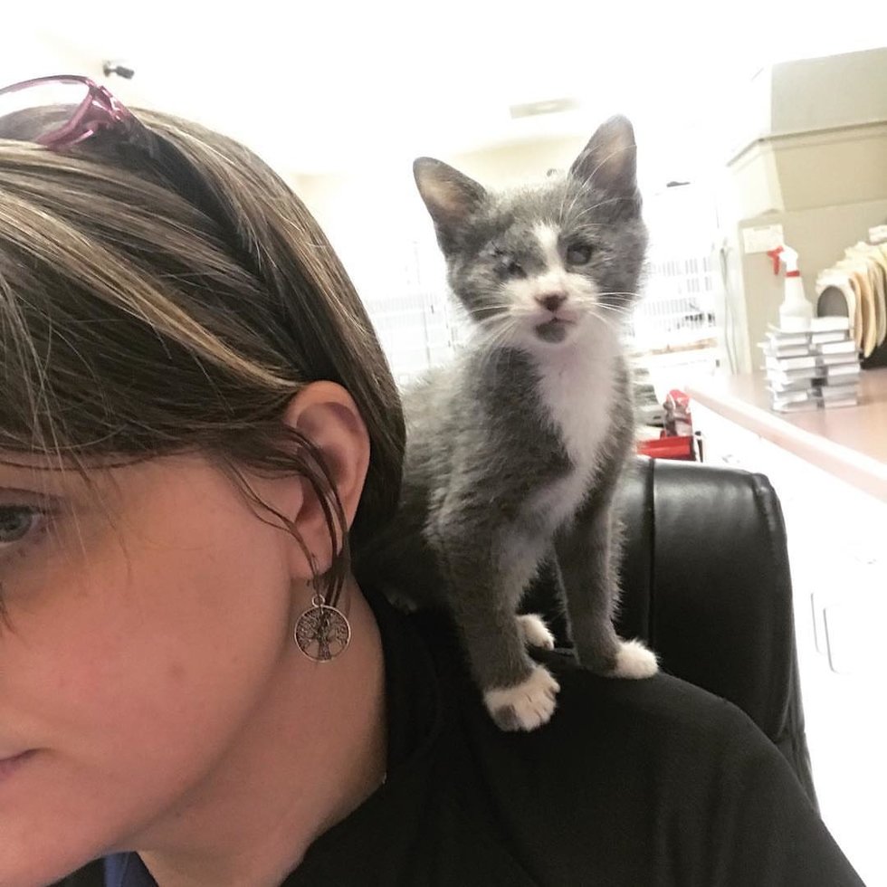 เธอพาเจ้าแมวไปทำงานด้วยกันทุกวัน จนตอนนี้ทุกคนในนั้นคุ้นชินกับมันแล้ว และยกให้มันเป็นแมวประจำออฟฟิศไป