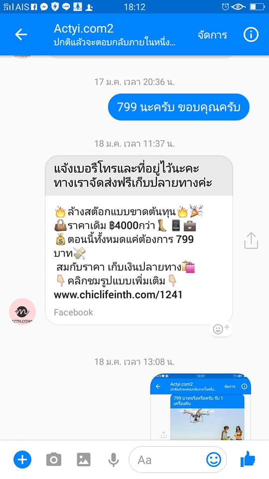ล่าสุดนี้คุณ ธีรเดช มังป๋อง ได้ทำการโพสต์เตือนภัยผ่านกลุ่ม DJI Owner Club Thailand บอกเล่าประสบการณ์การซื้อโดรนราคาถูกกับเพจขายโดรน Actyi.com2 โดยระบุไว้ว่า ‘เพจนี้อย่าไปหลงเชื่อซื้อนะครับผมโดนมาละ’