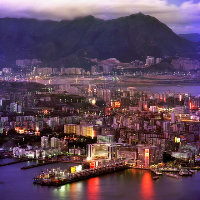 แสงสีของ Kai Tak และอ่าว Kowloon
