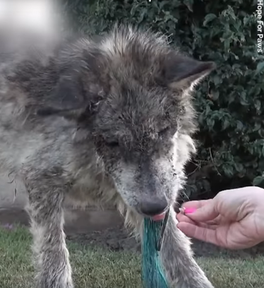 หลังจากที่ผู้ช่วยเหลือคล้องเชือกที่คอมันได้ และใช้เวลากับมันสักพัก เจ้าหมาก็กลายเป็นสุนัขที่น่ารักและอ่อนโยนอย่างไม่น่าเชื่อ