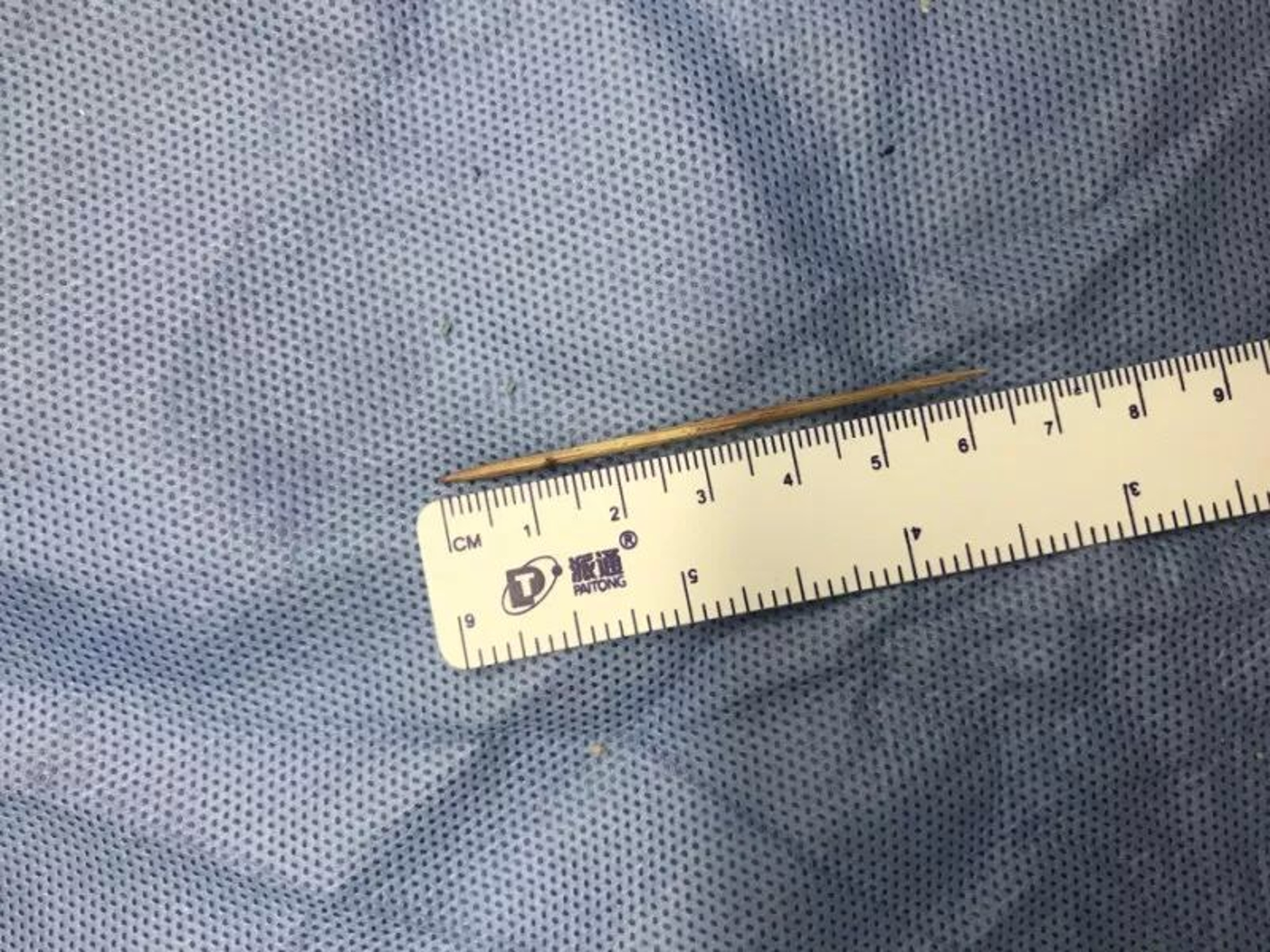 จากการตรวจสอบพบว่ามีวัตถุแปลกปลอมติดอยู่ที่บริเวณ ‘หัวใจ’ ของเขา ซึ่งเจ้าสิ่งนั้นมันคือ ‘ไม้จิ้มฟัน’ ที่มีความยาวราวๆ 6 เซนติเมตร!?