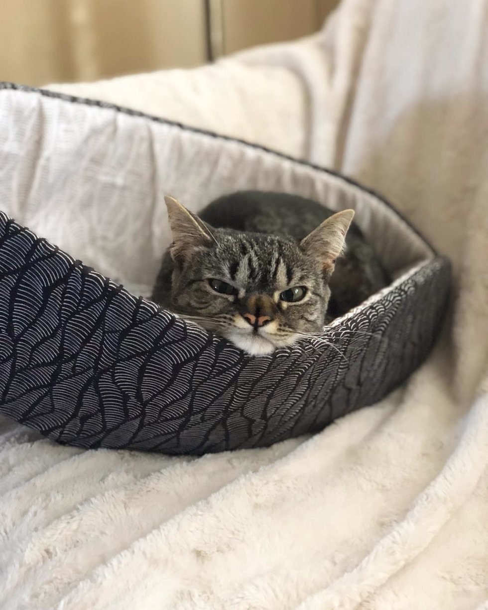 ทว่าพอแมวน้อยหน้าบึ้งเข้ามาอยู่กับเธอได้เพียงชั่วโมงเดียว มันก็ทำให้เจ้าแมวอารมณ์บูดของเธอยอมรับมัน และช่วยรับดูแลมันเหมือนเป็นน้องได้แล้ว…เธอจึงมั่นใจว่ามันน่าจะเหมาะกับบ้านของเธอ และเปลี่ยนมารับเลี้ยงมันแทนการอุปถัมภ์