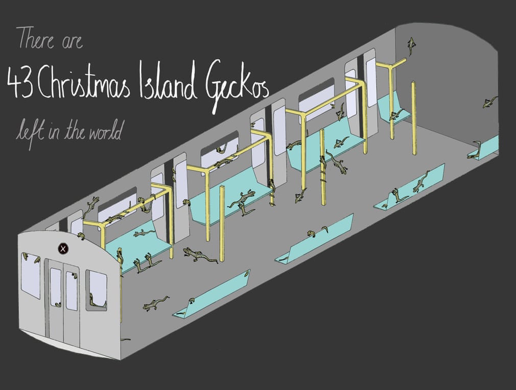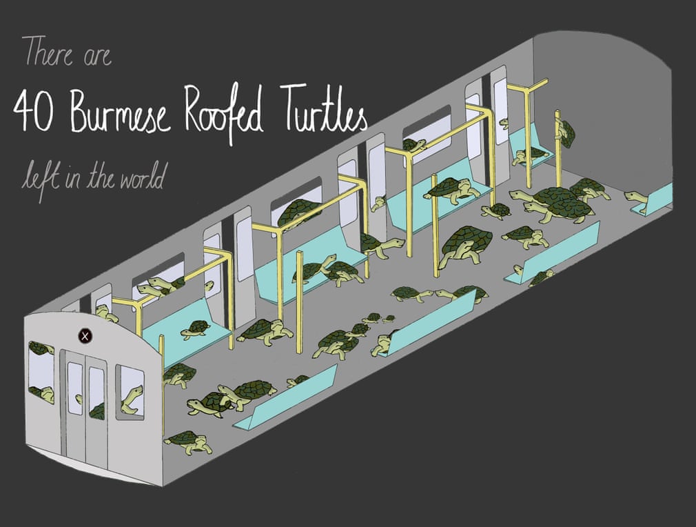 Mona Chalabi ศิลปินผู้นำเอาสถิติดังกล่าวมาสร้างเป็นภาพประกอบเพื่อให้เข้าใจได้ง่ายขึ้น ซึ่งจำนวนของสิ่งมีชีวิตทั้ง 7 ชนิดนี้ถือว่าเหลือน้อยมากจริงๆ จำนวนของแต่ละชนิดนั้นสามารถยัดใส่ “ตู้รถไฟได้ไม่เกิน 1 ตู้”