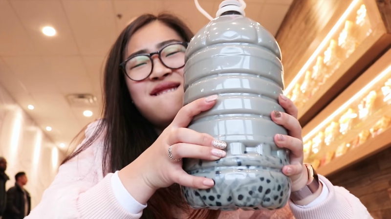 เธอจึงทำแกลลอนขนาด 4 ลิตรสำหรับใส่ชาไข่มุกขึ้นมาเอง (จริงจังประมาณนี้) และเริ่มภารกิจดื่มชาให้หมดภายใน 12 ชั่วโมง แทนการทานอาหารตามปกติ