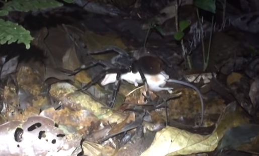 การที่เห็นแมงมุมทารันทูล่าที่มีขนาดใหญ่มากแบบนี้ ไม่พอมันยังกินตัวพอซซั่มที่มีขนาดใหญ่ถึง 35 – 94 ซม.ได้ ก็น่ายินดีว่าป่าแห่งนี้ยังคงสมบูรณ์ไม่เปลี่ยนไป