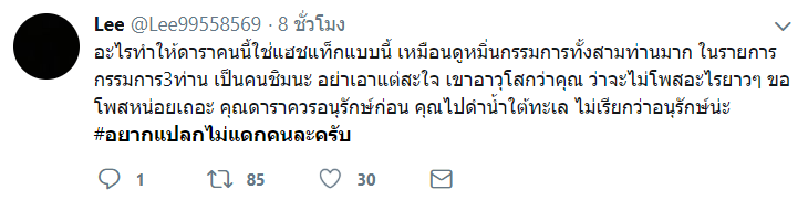 จากแฮชแท็กดังกล่าว ทำให้เกิดกระแสขึ้นในโลกโซเชียล โดยชาวเน็ตส่วนมากคิดว่าปั้นจั่นใช้ถ้อยคำไม่เหมาะสมและรุนแรงเกินไปในแฮชแท็ก ทำให้เกิดกระแสในแง่ลบต่อนักแสดงหนุ่มช่อง 3