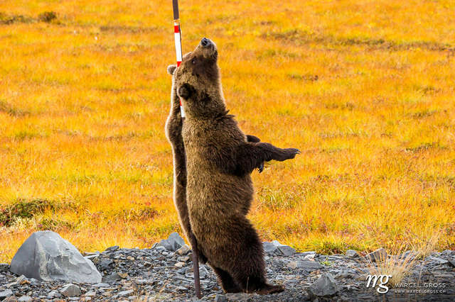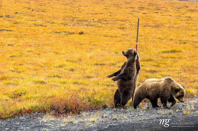 เราจะไม่มีวันได้รู้เลยว่าหมีทำอย่างไรกับไม้เหล่านั้น หากไม่มีใครบันทึกภาพเอาไว้ได้ แต่โชคดีที่ Marcel Gross ช่างภาพชาวสวิตเซอร์แลนด์ อยู่ที่นั่นพอดี เขาจึงได้ถ่ายรูปขณะที่หมีกำลังทำบางอย่างกับไม้ที่ปักอยู่ข้างถนน