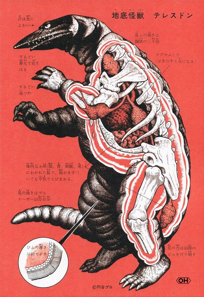 วันนี้เราจะมานำเสนออนาโตมีภายในเหล่าไคจูทั้งหลาย โดยมีต้นฉบับมาจากหนังสือ Anatomical Guide to Monsters เขียนโดย Shoji Otomo และวาดภาพโดย Shogo Endo ที่เขียนขึ้นมาในปี 1967